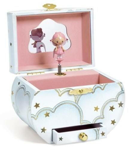 • a zenélő ékszerdobozban egy bűbájos manó lány, mint kecses balerina táncol a dallamra egy kis tükör előtt