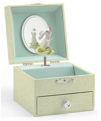 • a zenélő ékszerdobozban egy cuki kis nyuszi, mint egy balerina kecsesen táncol a dallamra egy kis tükör előtt