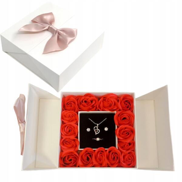 Donboly Ékszerdoboz Fehér rózsákkal Hordozható Ajándék ötlet (B0D1YKVBXY)
