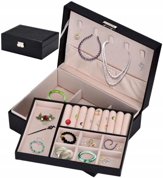 EdiBazzar Ékszerdoboz XL Ékszertartó Nagy ékszeres láda doboz tágas fekete (7542124235041)ALLEGRO