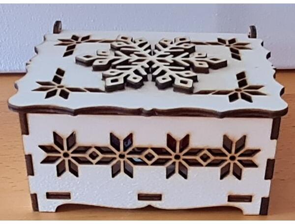Termékjellem zők: Anyag: Kiváló minőségű 3mm vastagságú rétegelt nyírfa, mely tartós és idővel is megőrzi szépségét. Lézervágás: Az ékszertartó részletek precízen lézervágottak, különleges és finom kialakítást nyújtva. Méretek: Optimális méretek az ékszerek tárolásához, könnyen használható a komódra vagy éjjeliszekrényre. Tulajdonságok: Szervezett Tárolás: Kompakt és szervezett elrendezés az ékszerek számára, azok kiválasztását és az öltözködést. Stílusos Design: Elegáns lézervágott mintázat és finom részletek, melyek mutatók megjelenést kölcsönöznek az ékszertartónak. Praktikus Fedel: Átlátszó vagy dekoratív fedél, ami lehetővé teszi, hogy gyorsan lássuk, melyik ékszer található a dobozban. Használati javaslatok: Egyedi Ajándék: Kiváló ajándék lehetőség az ékszerkedvelő barátoknak vagy családtagoknak. Utazáshoz Ideális: Kompakt mérete miatt könnyen hordozható, ideális utazáshoz és üdüléshez. A 3mm rétegelt lemez Lézervágott Ékszertartó Doboz elegáns és funkcionális tároló megoldás ékszerei számára. A lézervágott részletek és minőségi anyag teszi egyedivé és stílusossá. Bármilyen alkalomra tökéletes ajándék vagy egyszerűen egy személyes luxus a mindennapokra. Rendelje meg most, és tárolja ékszereit stílusosan és rendszerezetten!