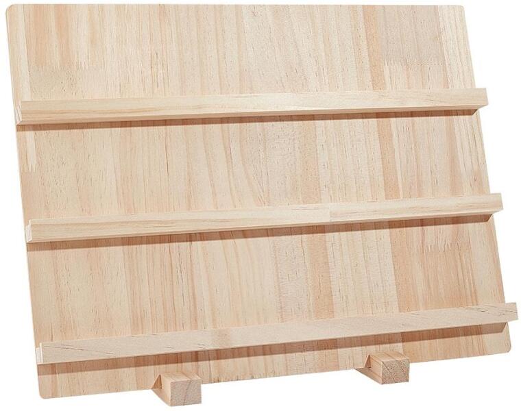 Natúr fából készült fekvő/vízszintes ékszertartó, fülbevaló állvány, melyen 3 szinten helyezheted el a polcokon az ékszereket, kiegészítőket.