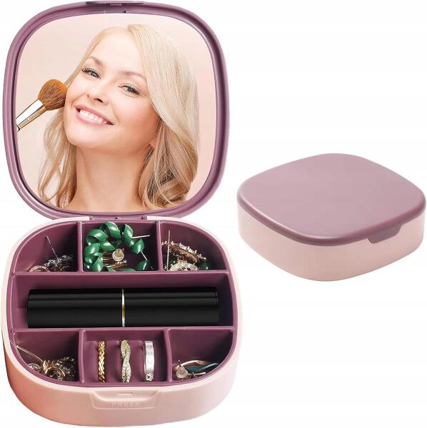 Kicsi Hordozható Ékszerdoboz Szervező Tükörrel Rózsaszín 10x10cm (B0CFH8BJBP)