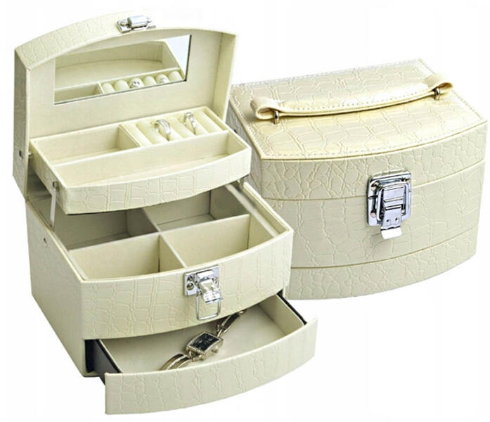 Lovrin Többszintű ékszerdoboz ekrü színben, tükörrel, fiókokkal, ékszertartó (Lovrin szkatułka)