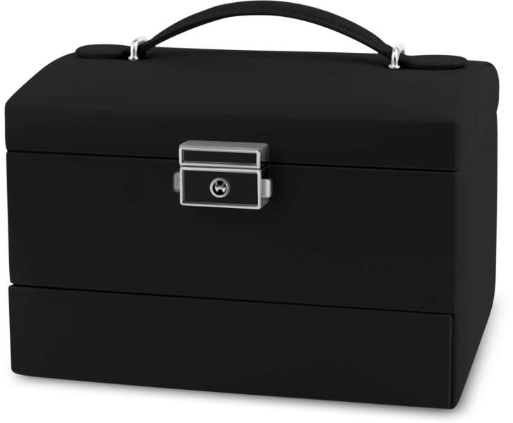 Elegáns Fekete Ékszerdoboz: Tökéletes Ékszereid Tárolására ✨ Ez a stílusos és praktikus ékszerdoboz ideális megoldás minden ékszerkedvelő nő számára. Több rekeszének és fiókjának köszönhetően könnyedén és áttekinthetően tárolhatod fülbevalóidat, gyűrűidet, nyakláncodat és karkötőidet. A beépített tükör pedig segít a tökéletes smink elkészítésében. Főbb jellemzők: ? Elegáns fekete szín: Tökéletesen illeszkedik bármely hálószobába. ? Zárható: Ékszereid biztonságban vannak. ? Több rekesz: Rengeteg hely a különböző ékszerek számára. ? Beépített tükör: Kényelmes sminkeléshez. ? Hordozható fogantyú: Könnyen magaddal viheted bárhová. ? Méret: 17,5cm x 13,7cm x 12,3cm ? Prémium minőségű PU ökológiai bőr: Tartós és könnyen tisztítható. Miért ezt az ékszerdobozt válaszd? Ez a doboz nem csak praktikus, de gyönyörű is. A gondos kidolgozás és a minőségi anyagok garantálják a hosszú élettartamot. Tökéletes ajándék lehet születésnapra, névnapra vagy karácsonyra, de magadnak is megérdemled ezt a kényelmet és szépséget! ?
