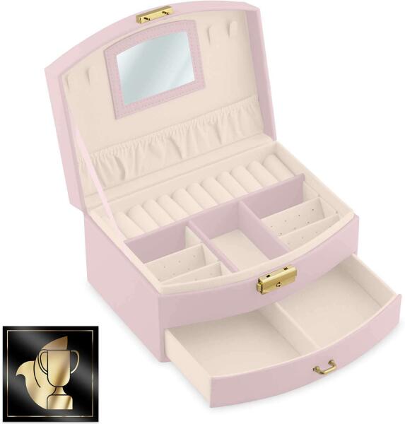 Elegáns ékszerdoboz: Tökéletes ékszereid tárolására ✨ Ez a gyönyörű rózsaszín ékszerdoboz ideális helyet biztosít minden ékszereidnek, legyen szó nyakláncokról, gyűrűkről, fülbevalókról vagy karkötőkről. Kényelmes, praktikus és stílusos, tökéletes választás minden nő számára. Főbb jellemzők: ? Kulccsal zárható: Védd meg értékes ékszereidet a véletlen kinyitástól! ? Beépített tükör: Könnyedén ellenőrizheted megjelenésed. ?️ Praktikus rekeszek: Rengeteg hely a különböző ékszerek számára. ? Elegáns rózsaszín szín: Stílusos és nőies megjelenés. ? Kényelmes hordozófogantyú: Könnyen szállítható. ? Robusztus kivitel: Nagy szilárdságú, kopásálló PU ökológiai bőrből. ? Méret: 20,5 cm x 13,5 cm x 10,5 cm Miért válaszd ezt az ékszerdobozt? Tökéletesen rendezi az ékszereidet, megakadályozva az összegabalyodást és a sérüléseket. Elegáns megjelenése feldobja a hálószobádat vagy a fürdőszobádat. Praktikus mérete miatt könnyen elfér bárhol. Prémium minőségű anyagokból készült, így hosszú éveken át hű társad lehet. Rendezd el ékszereidet stílusosan és biztonságosan ezzel a csodálatos ékszerdobozal!
