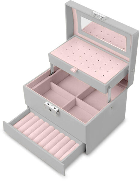 Massido Ékszeres doboz tükörrel - Szürke, Rózsaszín (TE670400)