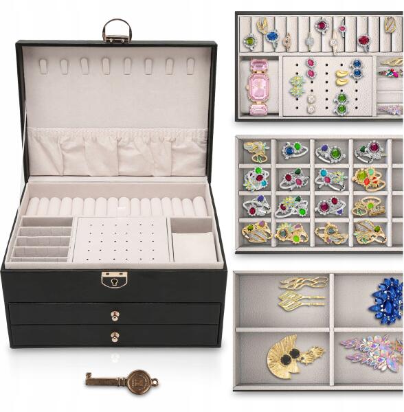 Rendszerező Ékszerdoboz Kulcstartó Doboz Ajándék Láda Fekete (007966)
