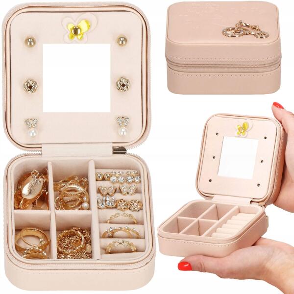 Belseje: A doboz belsejében található a következő elemekből álló, a dobozban található doboz:Főbb rekesz: Zárható: Zárható: Zárható:6 rekesz a fülbevalók és gyűrűk számára 3 cm-es4 rekesz 2,5x4cmtükör 4,5x4,5cm6 hely a tükör körül a fülbevalók számára