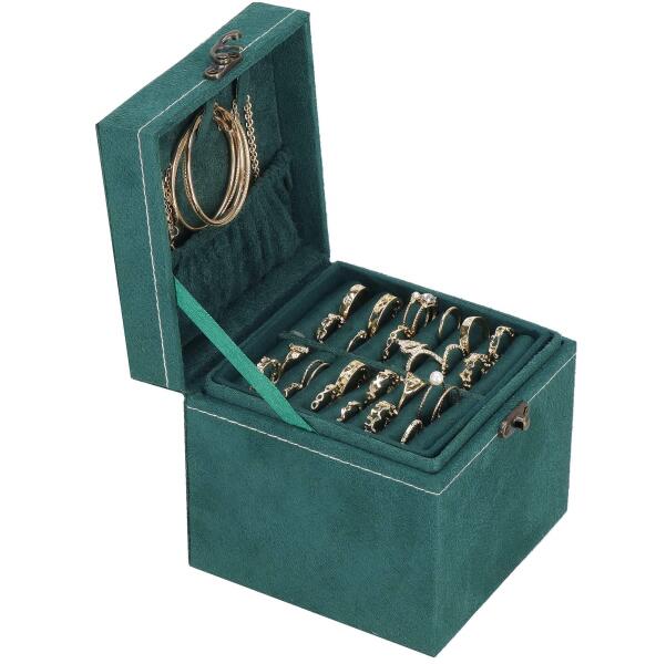 SPRINGOS Rekeszes zöld ékszerdoboz 10x10x5 cm (HA1088)