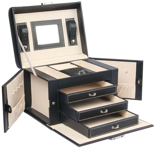 Troli Exkluzív fekete ékszerdoboz tükörrel H30E