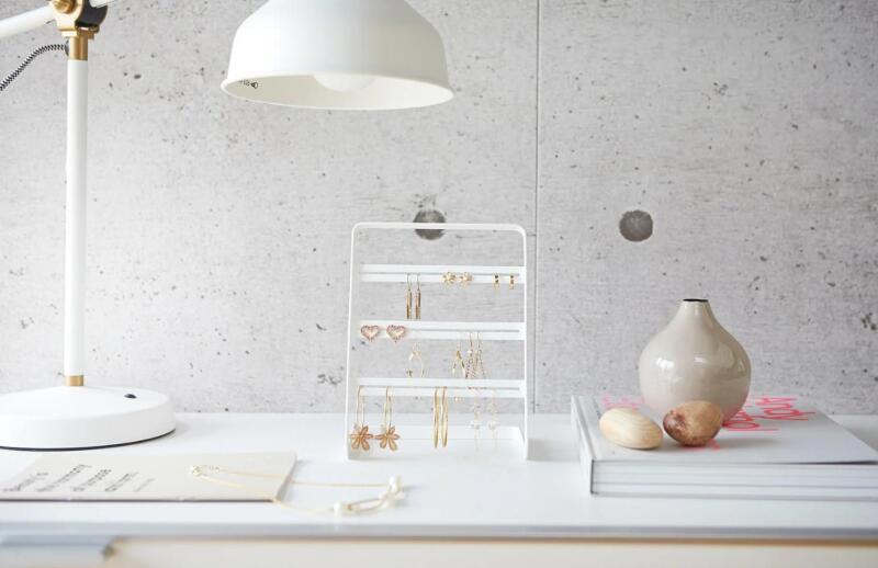 A Yamazaki Tower Stand nemcsak praktikus, hanem stílusos megoldás is személyes tárgyai rendszerezésére. Az állvány fehérre lakkozott fémből készült, minimalista kialakítása pedig könnyen illeszkedik bármilyen belső térbe. A torony három tartóval van felszerelve, amelyekre felakaszthatja a fülbevalóit. Ez az elrendezés nemcsak az ékszerek praktikus tárolását teszi lehetővé, hanem kedvenc darabjainak világos megjelenítését is. Bár az állványt elsősorban fülbevalókhoz tervezték, más kisebb ékszereket, például gyűrűket vagy karkötőket is felakaszthat rá.